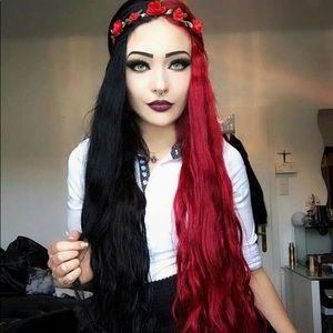 Globalizethis aggregates half red half black hair information to help you offer the best information support options. Check out our half black half red wig selection for the very best in unique or custom handmade pieces from our shops. Hypno hair tie from kreepsville666 you can use my code hailhorror13 for 13 off.