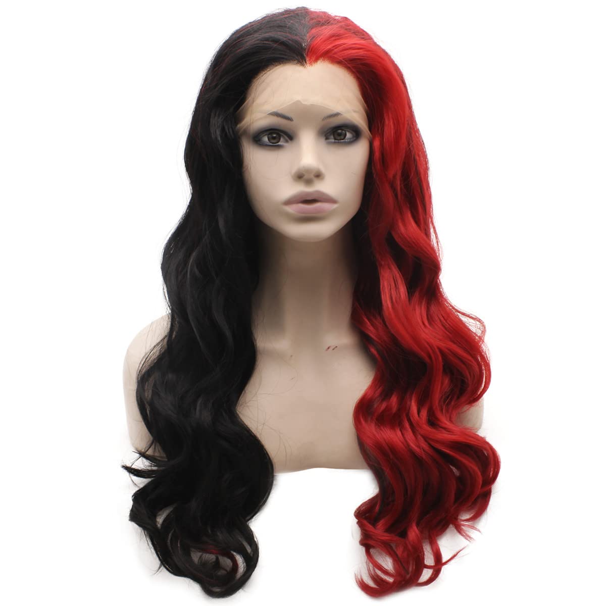 Amazon Com Long Wavy Half Black Red Two Tone Synthetic Lace Front Party Wig Clothing Shoes Jewelry